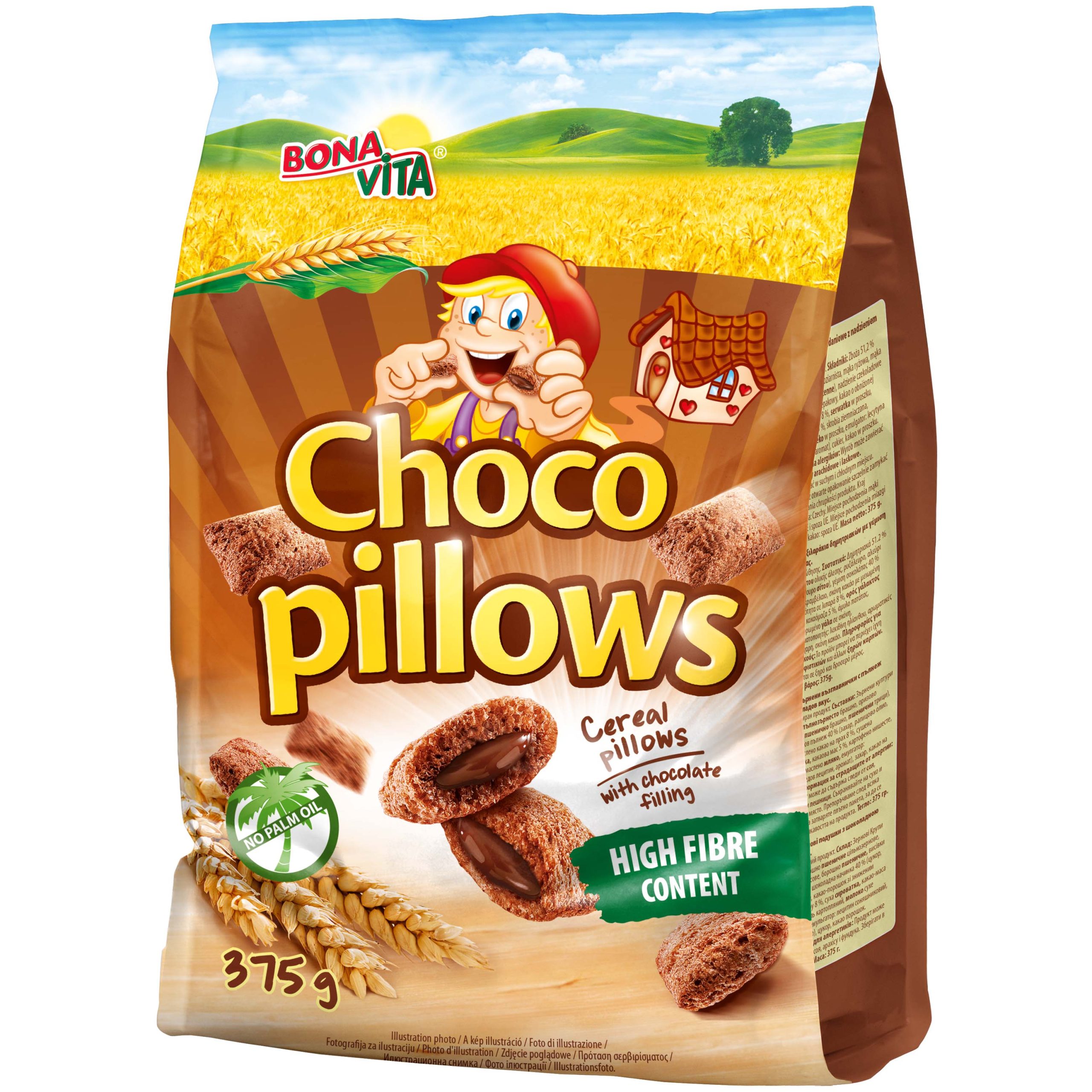 Poduszeczki śniadaniowe z nadzieniem czekoladowym. Produkt ekstrudowany.